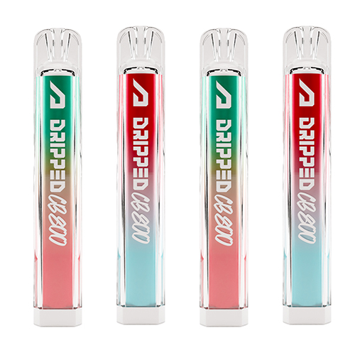 • Dripped CB800 är en serie engångs vapes med fast nikotinstyrka på 20 mg/ml. Produkterna är förbrukningsklara vid leverans och kräver varken påfyllning eller lösa e-vätskebehållare. Serien tillhör kategorin engångs vape och finns i flera frukt-, bär-, mint- och dryckesprofiler.