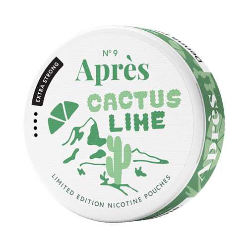 Après No.9 Cactus Lime – Extra Strong är tobaksfria nikotinpåsar i slim-format med smakprofil av kaktus och lime. Produkten levereras i en dosa med 20 portioner.