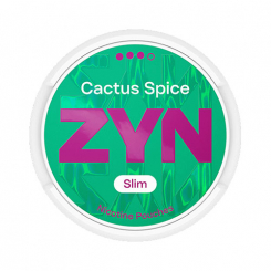 ZYN Cactus Spice Slim S3 är en tobaksfri nikotinpåse från Swedish Match i slim-format. Produkten tillhör ZYN-serien och kategorin vitt snus. Smakprofilen är kaktus, lime och en kryddig touch av chili. Styrkan är klassad som Stark (S3). En dosa innehåller 21 prillor och nikotininnehållet är 9 mg per portion (≈ 13,22 mg/g).